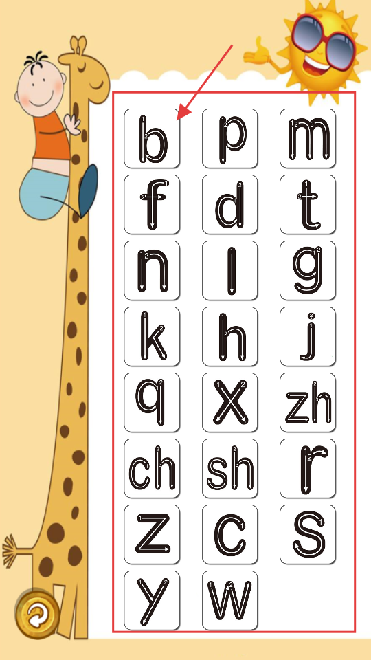 3、进入声母展示页,有【b】【p】【m】等声母,选要学习的声母,比如【b】,进入其详细学习。