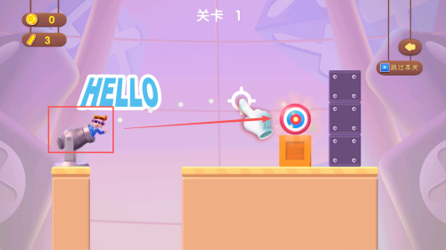 2、瞄准靶子射击:面对关卡中的靶子,调整大炮角度与力度,确保 “子弹先生” 能精准命中目标,完成关卡要求。