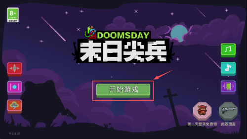 1、如何进入游戏?打开末日尖兵主界面,勾选“美二天登录免费领”后,直接点击“开始游戏”。