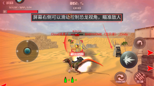 4、击溃对手生存:对战中利用恐龙射击与技能击溃对手,尽量保持自身存活,坚持到最后即可获得胜利,解锁更多内容。