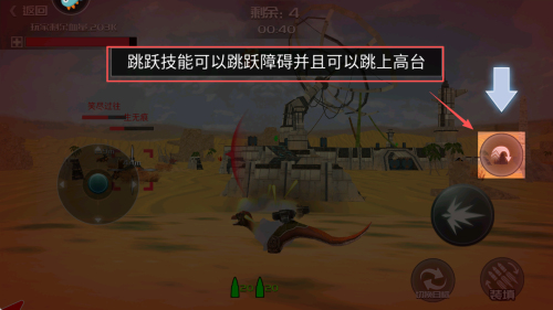 4、如何跨越障碍?00:40内按跳跃技能,可越障跳高台,落地生无痕,继续冲锋。
