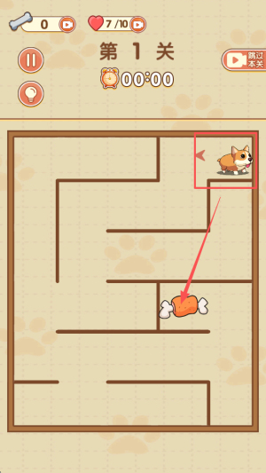 1、开启迷宫之旅:进入游戏熟悉操作,了解 “帮小狗找迷宫出口” 的规则,明确通关目标,选择初始迷宫关卡开启挑战。