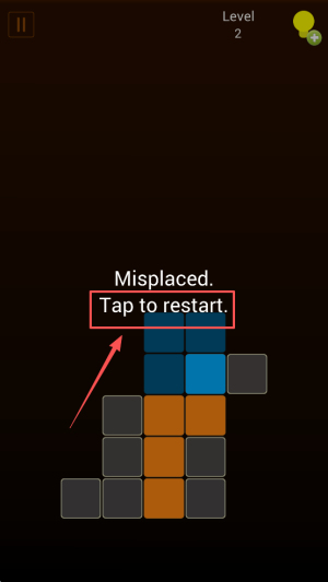 3、然后,如果方块放置错误,点击“Tap to restart.”重新开始当前关卡。
