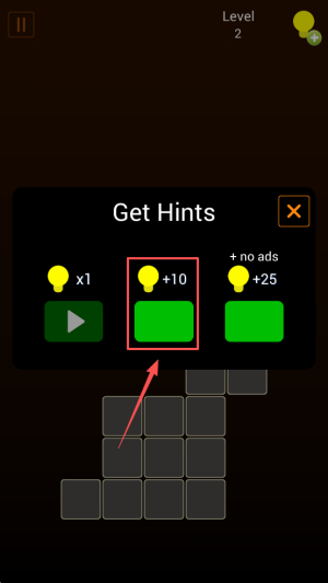 4、最后,如果需要帮助,可以选择获取提示或观看广告以获得更多灯泡。