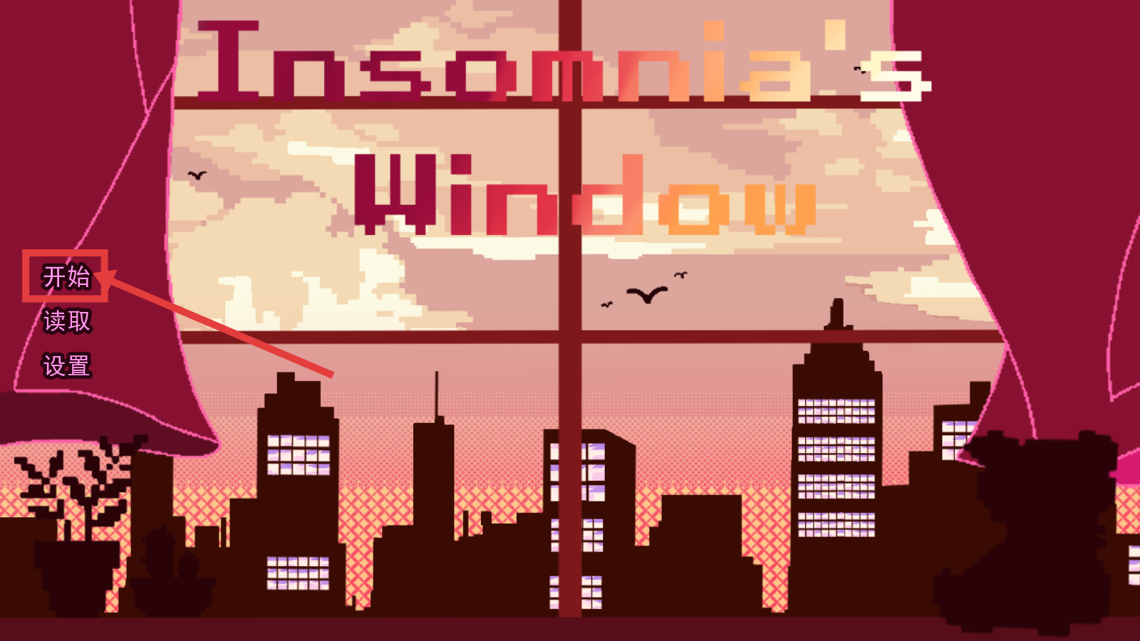 1、启动【Insomnia'sWindow】后,优先点击【开始新游戏】,可先熟悉界面布局,确认无操作问题后再正式进入剧情。