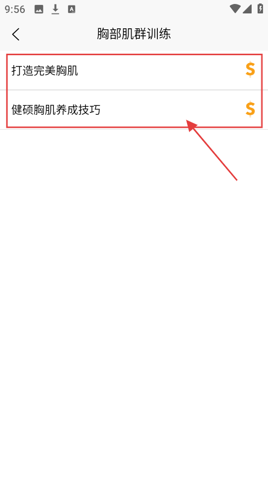 4、还可以切换至【胸部肌群训练】页,有【打造完美胸肌】【健硕胸肌养成技巧】等,可选择学习胸肌训练方法。