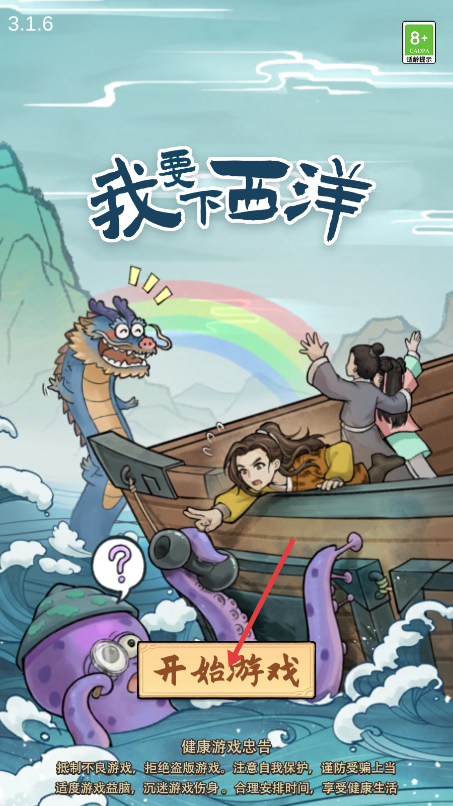1、进入游戏《我要下西洋》,点击【开始游戏】按钮,正式开启你的航海冒险之旅。