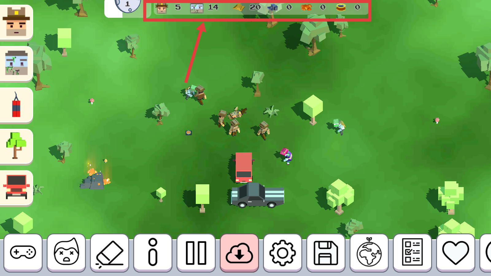 1、刚进入游戏,先熟悉界面中的资源统计,了解现有材料数量,为后续建造房屋、制作道具做好准备。
