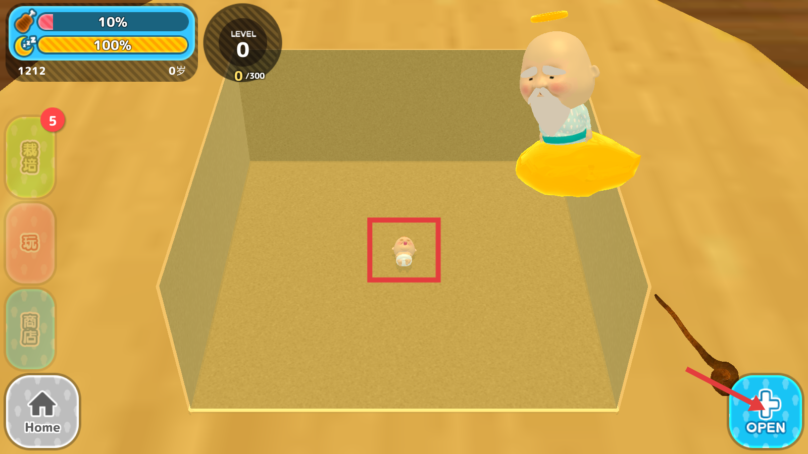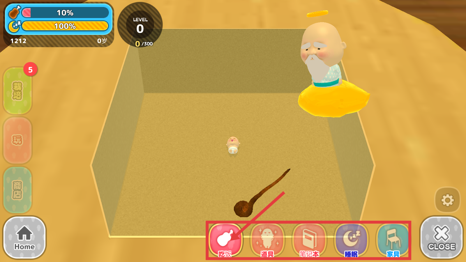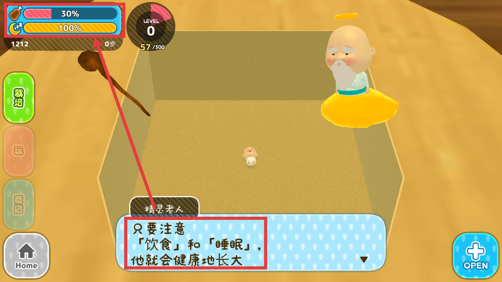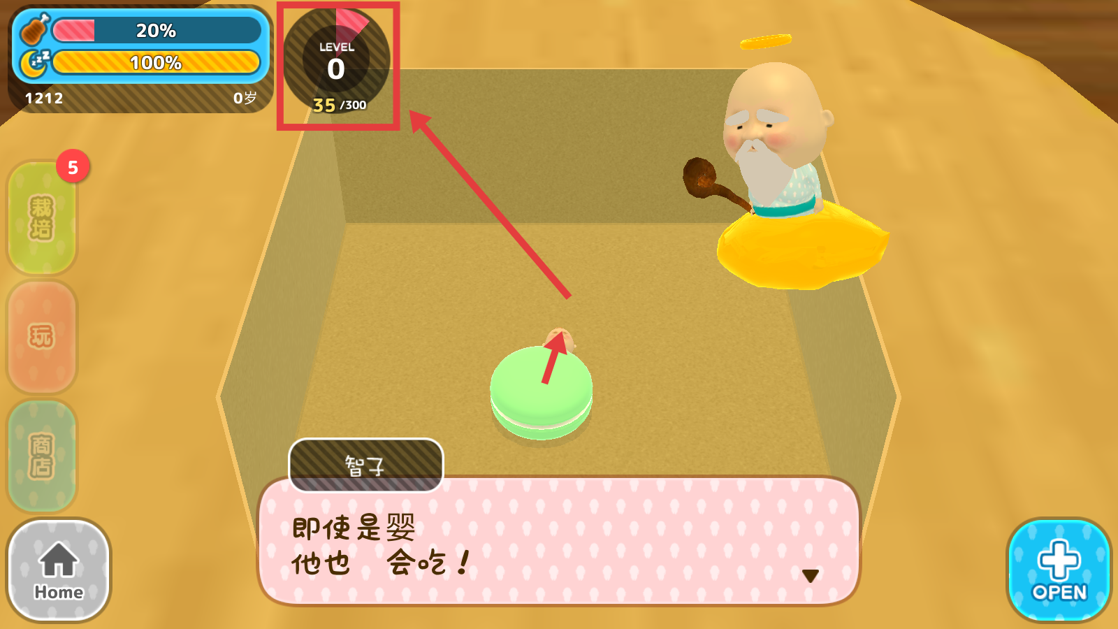 4、给角色提供食物,能推进【LEVEL-0】进度,像显示的【35/300】,积累成长值。