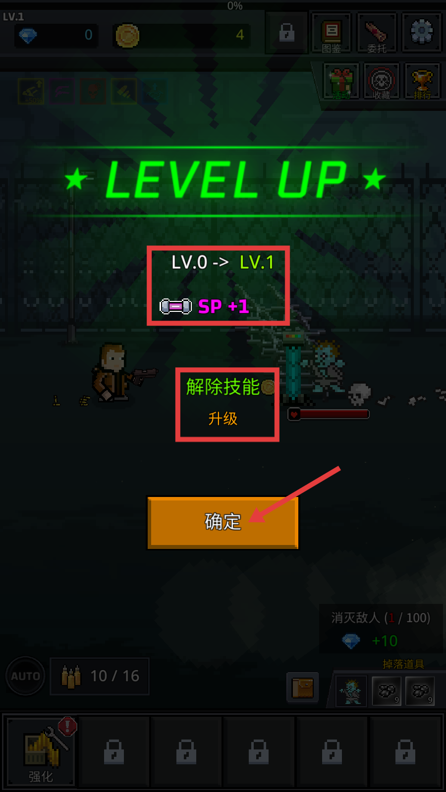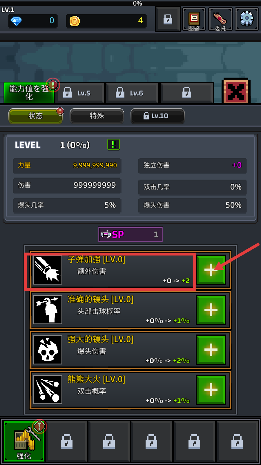 3、在技能强化界面,优先升级【子弹加强】类技能,能增加额外伤害,提升战斗效率。
