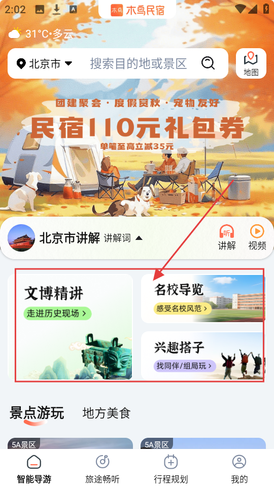 1、在首页可选择【文博精讲】【名校导览】【兴趣搭子】等板块,进入对应主题页面。