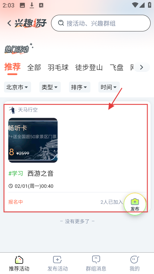 3、到兴趣搭子页,挑选热门活动,如【西游之音】,查看活动相关信息。