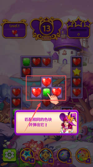 1、开启魔法冒险:进入游戏熟悉消除操作,了解 “配宝石集道具、助伙伴闯关卡” 的规则,选择初始关卡,开启奇幻旅程。