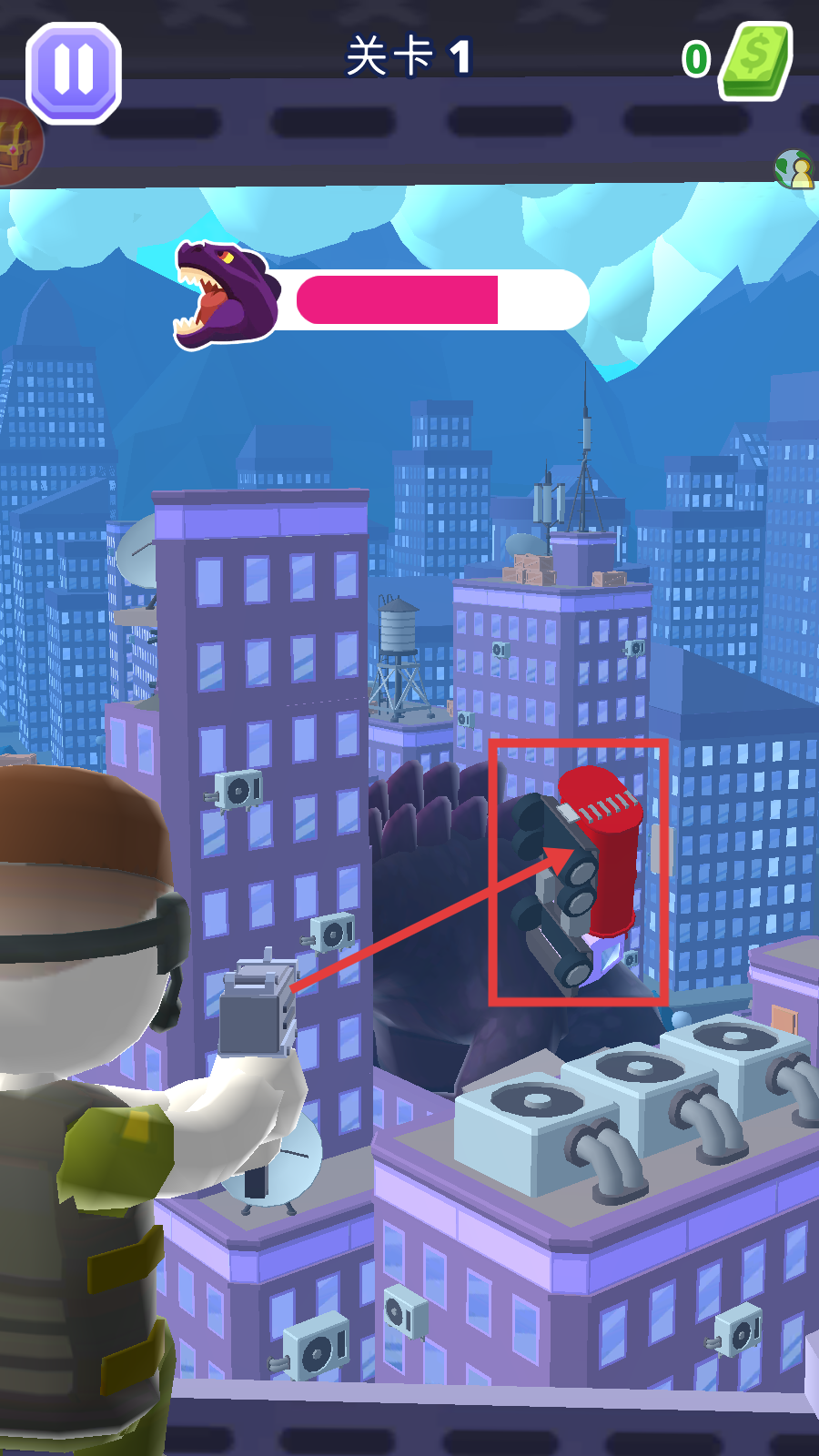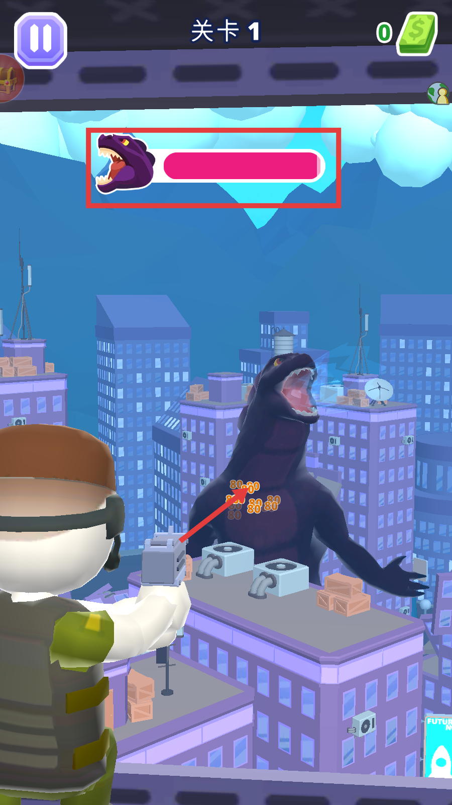 1、点击【点击开始】,进入关卡1,开启与巨兽的战斗。