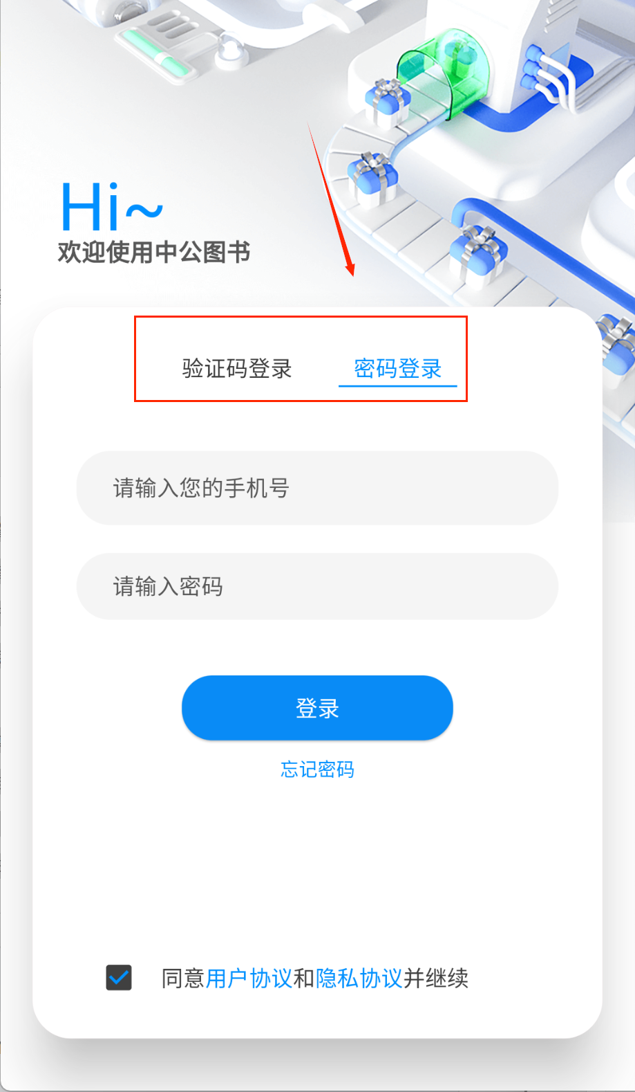 1、首先打开软件后会看到很清爽的登录界面呢,上方有温馨的欢迎语,中间可以选择验证码登录或密码登录两种方式,要先勾选同意用户协议。