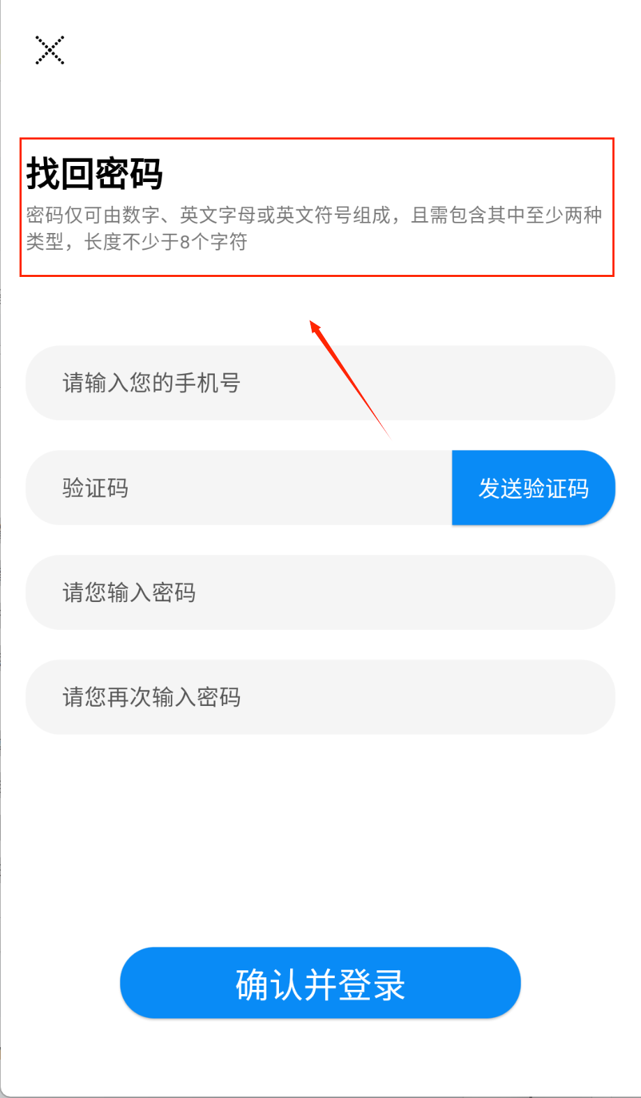 4、最后完成所有填写后点击蓝色的确认按钮,系统就会保存新密码并自动跳转回登录页面,这时候用新密码登录就可以继续使用软件啦。