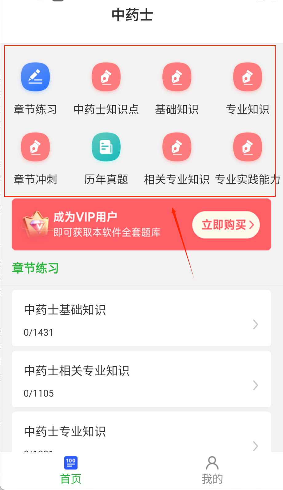 2、在题库中心可以按照中药鉴定、中药炮制等章节分类进行专项训练,每道题目都配有执业药师团队编写的专业解析和关联知识点拓展。
