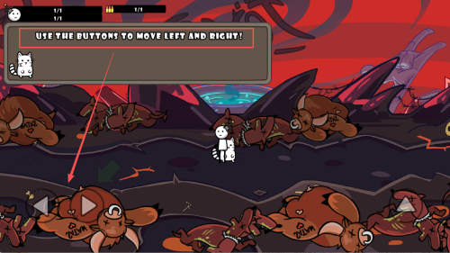 2、如何左右移动?看到“USE THE BUTTONS TO MOVE LEFT AND RIGHT!”时,按左右按钮移动角色。