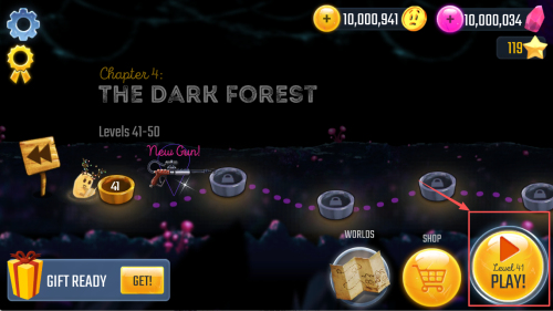 2、如何选择章节?在章节列表中找到“Chapter4: THE DARK FOREST”,点击“Level 41”后按“PLAY!”进入关卡。