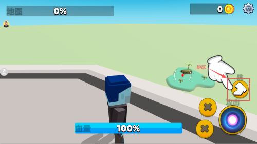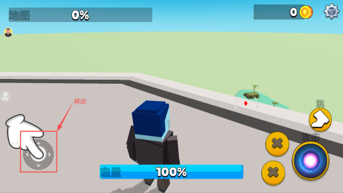 1、如何查看状态?注意左上角“0% 0 移动 血 100%”,血条满即可开始移动。