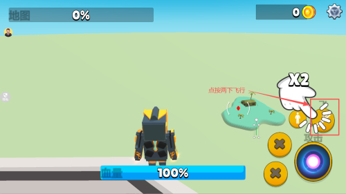 3、如何起飞?看到“0% 点按两下飞行 100%”提示,快速双击屏幕就能升空。