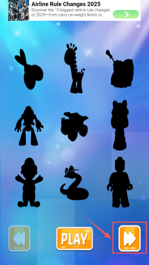 4、最后,通过点击“PLAY”按钮旁边的箭头图标来重新开始游戏或继续游戏进程。