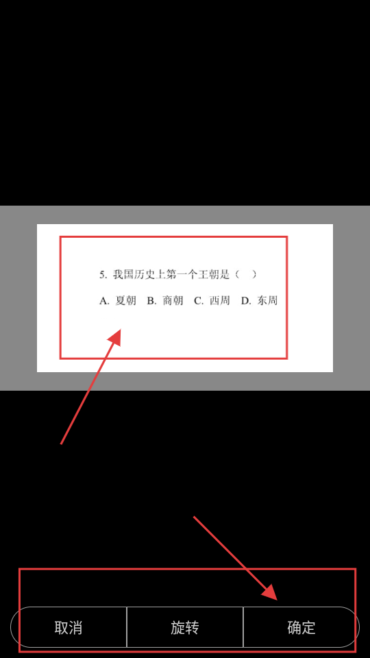 3、选择图片后,可对题目图片进行旋转等操作,确认后点【确定】,进入后续答题步骤。