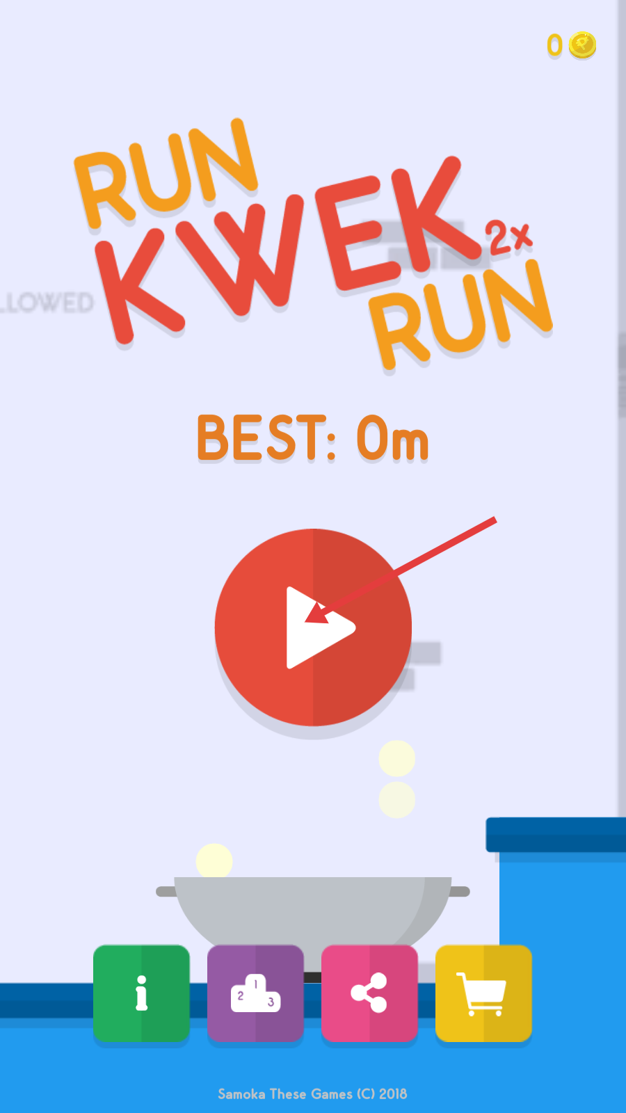 1、打开【Run-Kwek-Run】游戏,点击红色播放按钮,开启跑酷挑战,目标是控制角色跑更远距离。