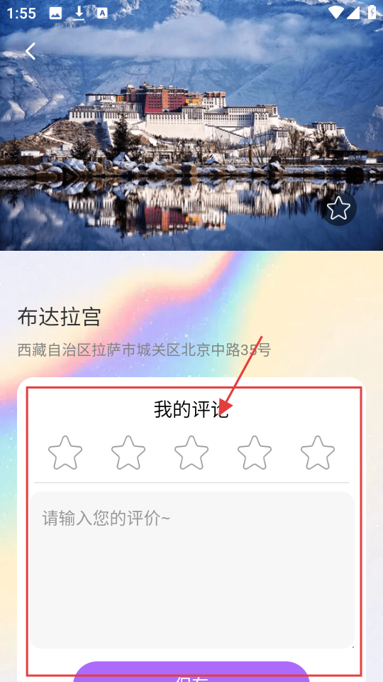 2、进入布达拉宫详情页,可看景点介绍,还能在【我的评论】区评分、写评价。