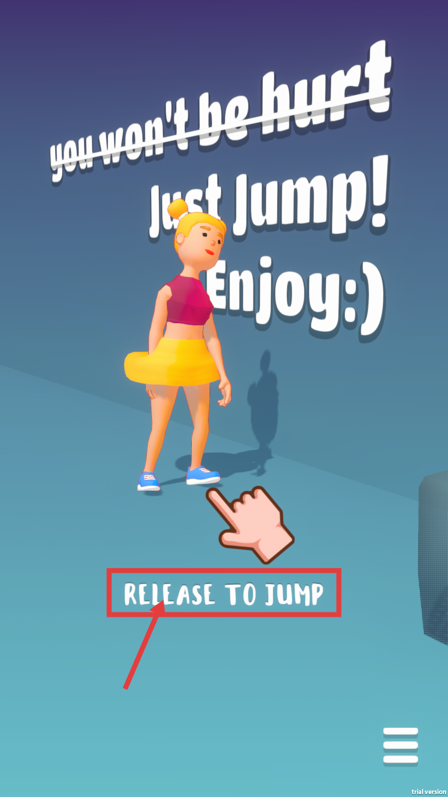 1、游戏开局看到【RELEASE-TO-JUMP】提示,释放操作即可让角色跳跃,放心按照提示开启,无需担心受伤。