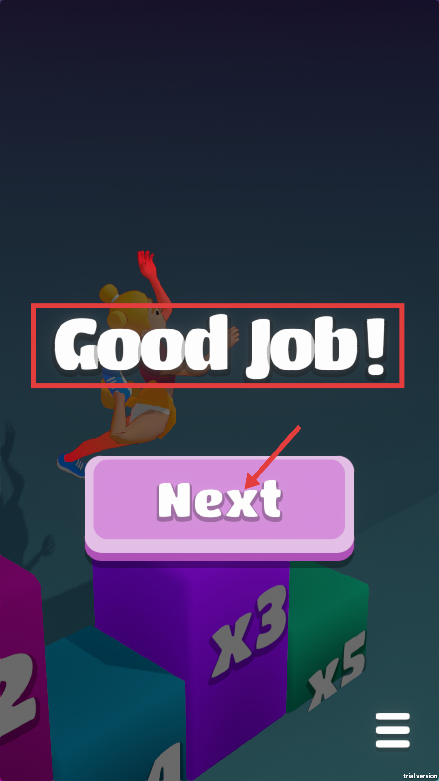 4、成功跳跃后界面会显示【Good-Job!】,此时点击【Next】按钮,就能进入下一个关卡继续挑战。
