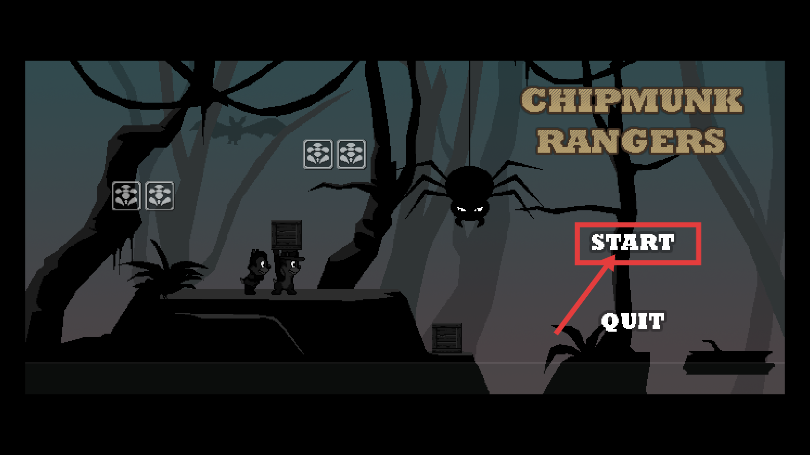 1、进入游戏时,看到【CHIPMUNK-RANGERS】标题界面,点击【START】开始游戏,开启冒险。