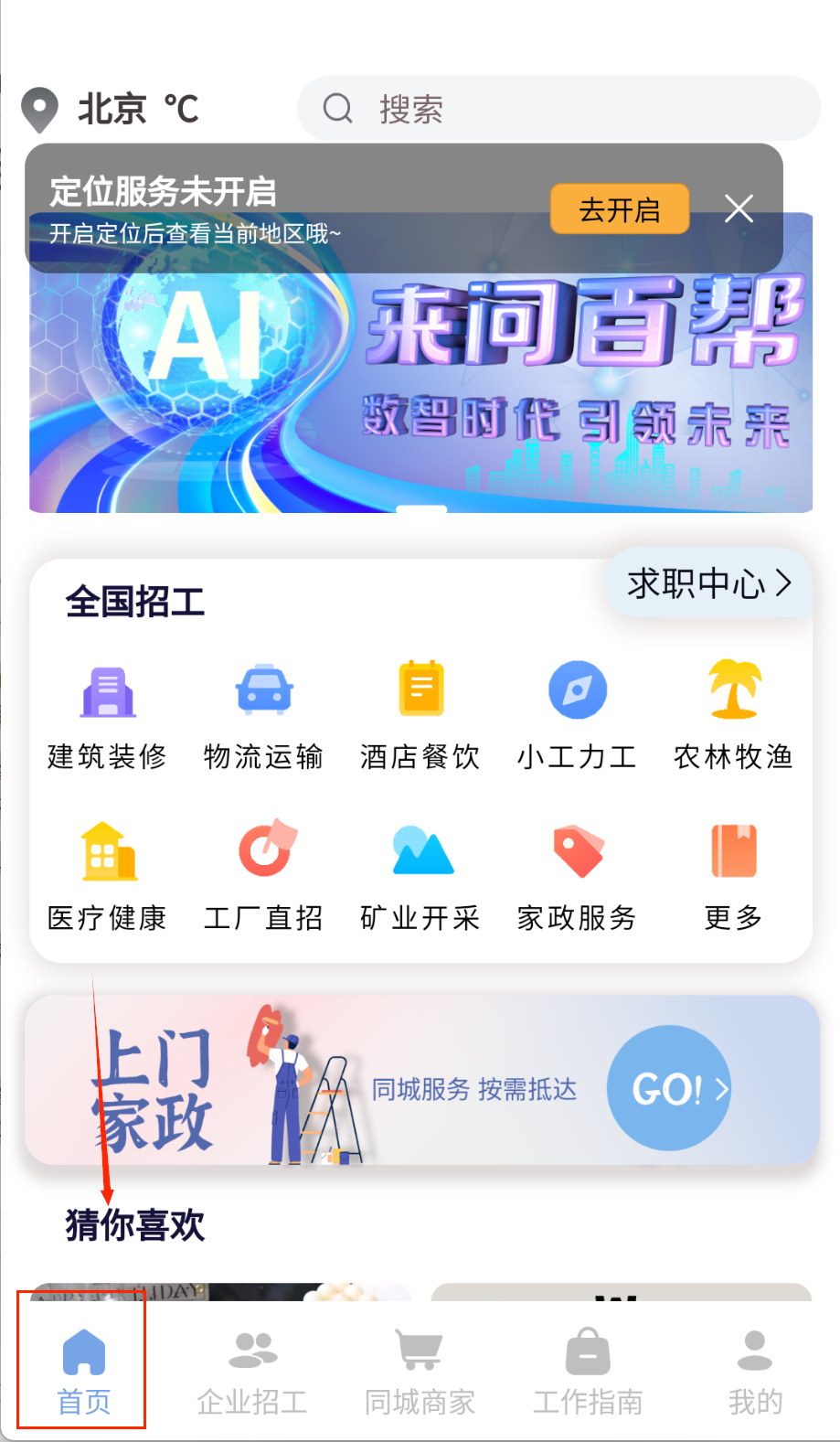 1、下载安装后完成手机号注册并登录账号,在首页浏览推荐的生活服务项目,或通过搜索框输入关键词查找特定服务。
