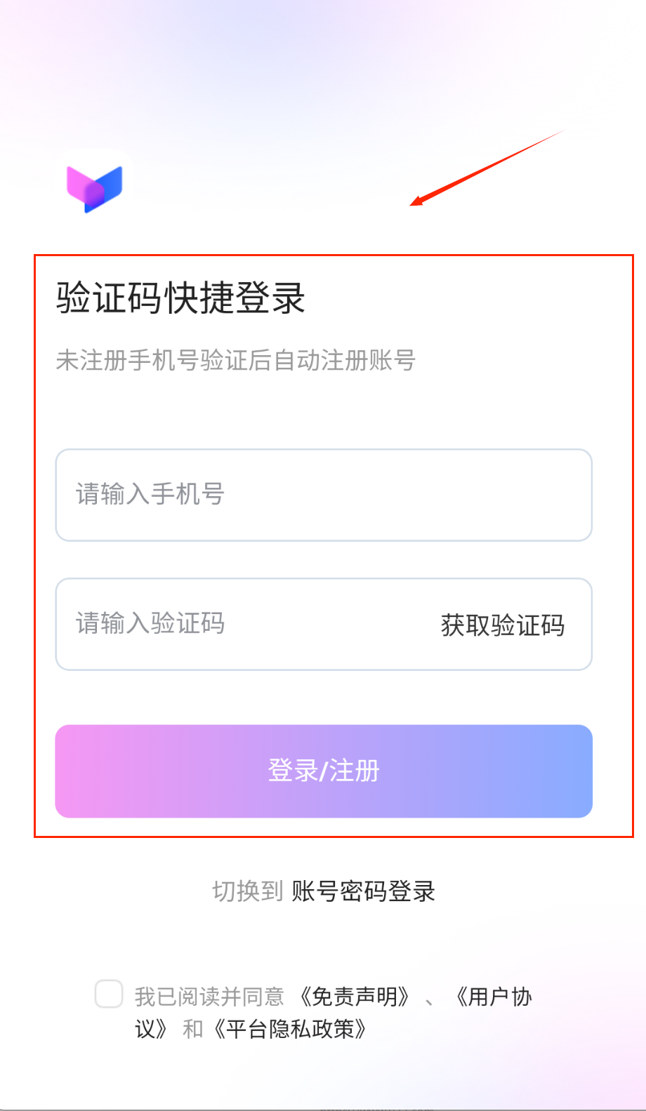 2、 如果您觉得输入密码太麻烦,可以选择更便捷的验证码登录方式,直接在手机号输入框填入您的号码并点击获取验证码。