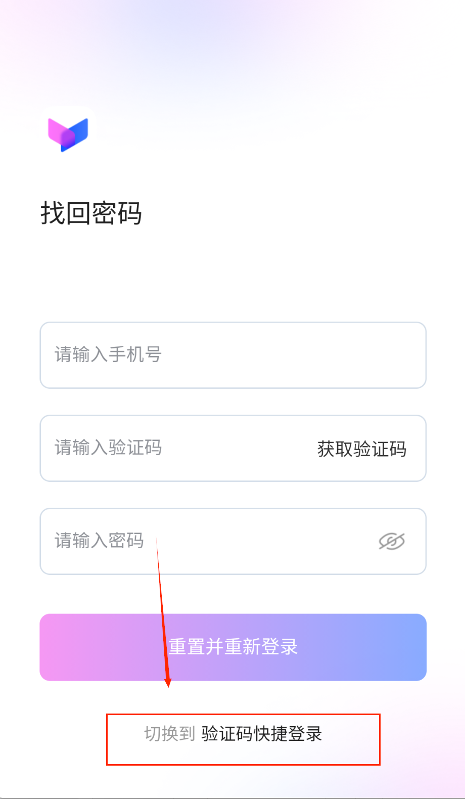 4、 设置新密码后点击重置并重新登录按钮,系统就会自动跳转回登录界面,这时您用新密码或者直接选择验证码登录都可以顺利访问账户。