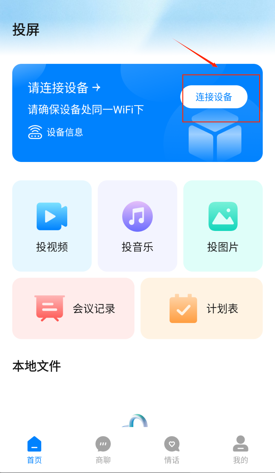 1、安装应用后进入设备连接界面,确保手机和投屏设备处于同一WiFi网络,选择对应设备完成绑定,即可开始投屏操作。