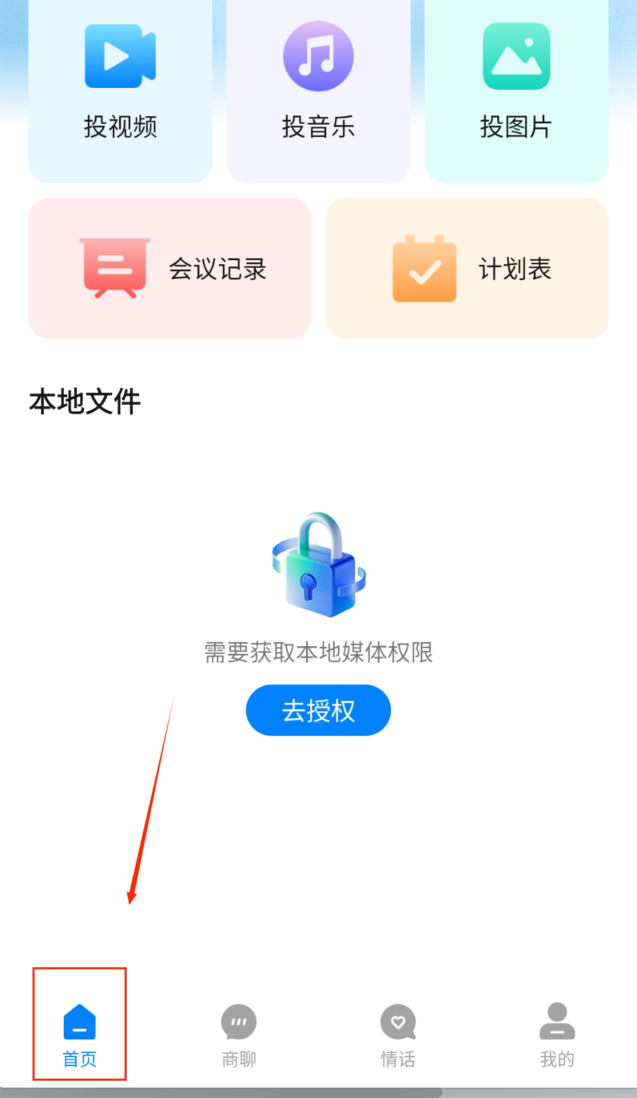 2、在文件管理模块浏览本地存储内容,支持按类型分类查找,选择需要展示的图片或视频文件,点击投屏按钮实现大屏共享。