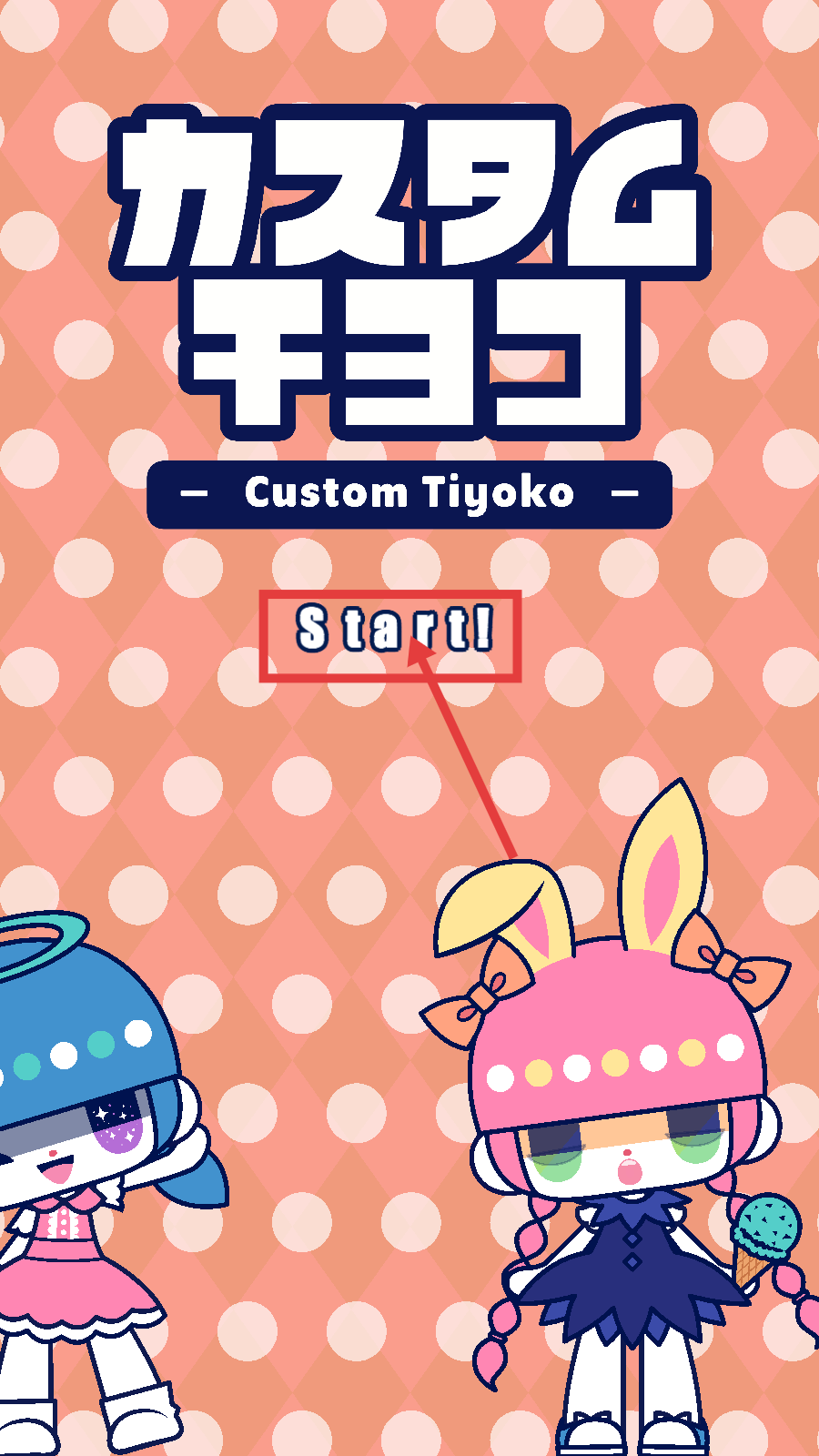 1、游戏开局界面显示【Custom-Tiyoko】,点击【Start!】按钮,即可进入游戏开始装扮角色。