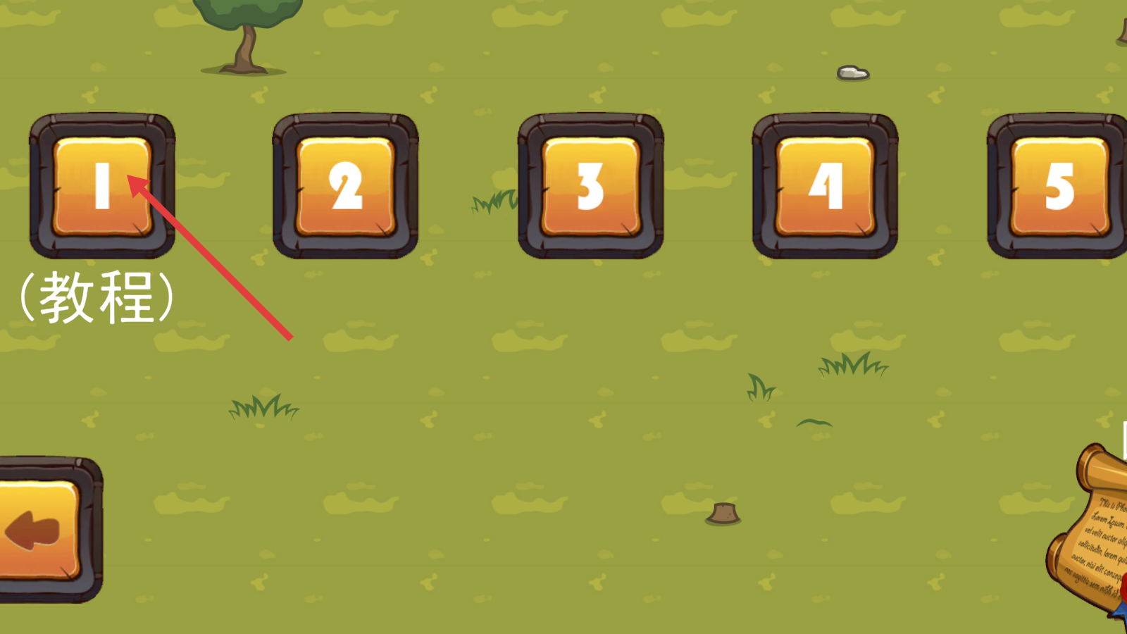 1、游戏开局,点击标有“(教程)”的【1】号关卡,进入教程关卡,熟悉游戏基本操作与玩法。