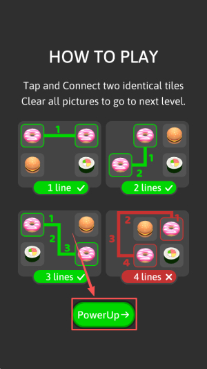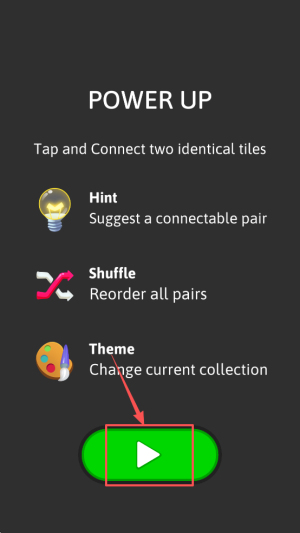 2、接着,学习使用“PowerUp”功能,包括提示、洗牌和更换主题,以帮助解决难题。