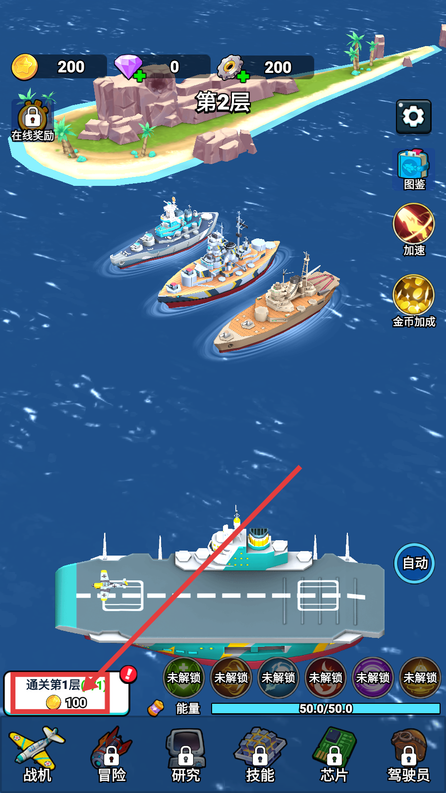 4、成功通关后,可获得如金币等奖励,接着挑战下一层,利用奖励强化战机或解锁新功能。