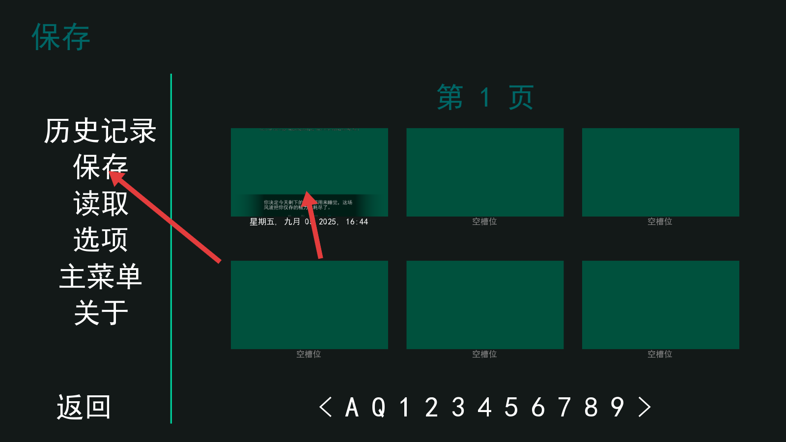 4、可进入保存界面,点击【保存】选项,留存当前游戏进度,方便后续继续游玩。