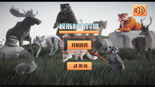 1、如何进入主界面?点击“D”图标,选择“模拟射击特猎”,再点“开始游戏”或“武器库”。