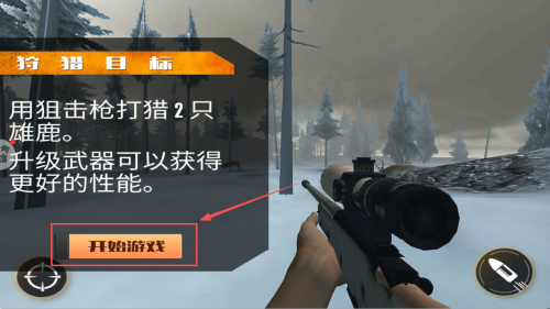 4、如何开始狩猎?阅读“用狙击枪打猎2只雄鹿”,升级武器再点“开始游戏”。