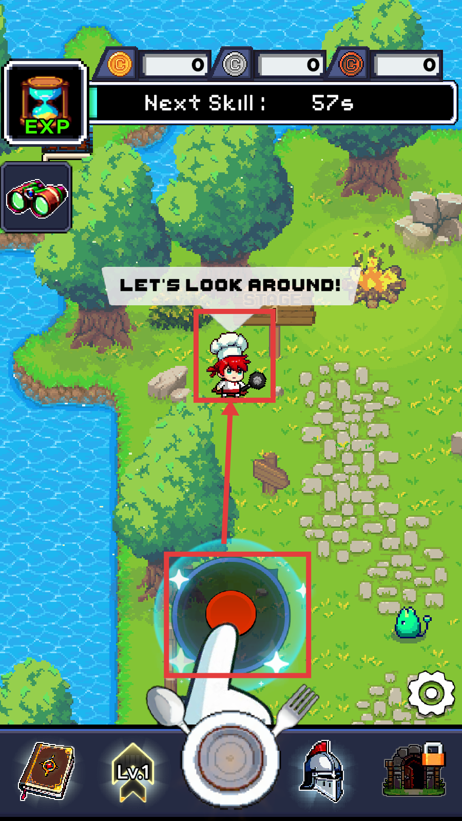 1、根据【LET'SLOOKAROUND!】提示,点击下方红色按钮,操控厨师角色开始探索场景。