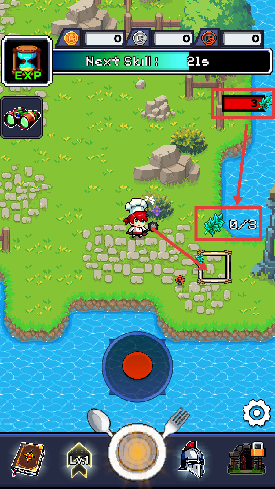 3、留意右上角的收集任务,需收集【3】个绿色草药,当前显示【0/3】,专注收集草药完成任务。