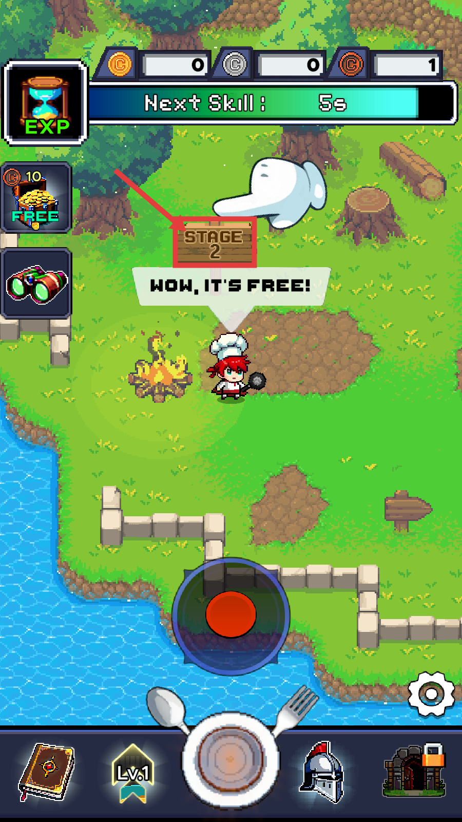 4、完成收集后,会推进到【STAGE2】,此时有【WOW,IT'SFREE!】提示,可进入第二阶段继续探索。