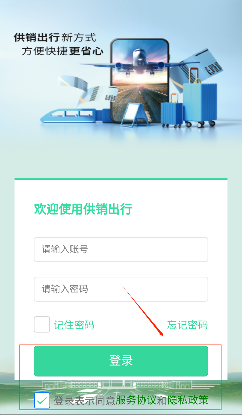 1、先在应用商店搜索供销出行并下载安装,打开应用后点击注册按钮,输入手机号获取验证码完成账号注册,记得仔细阅读用户协议。