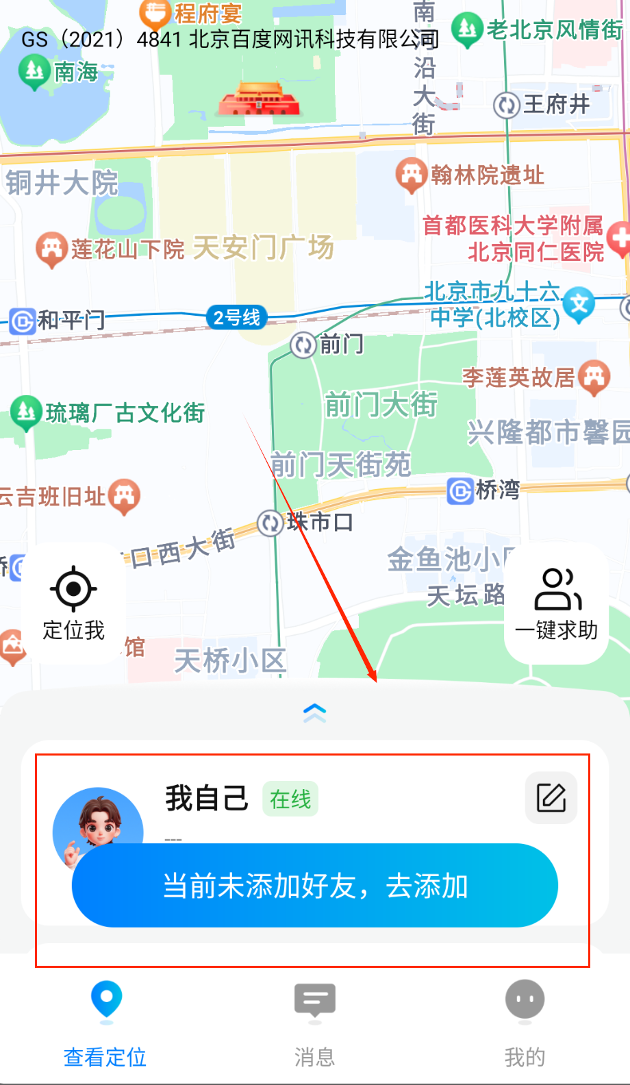 2、对方同意授权后即可在地图界面实时查看其当前位置信息,支持在标准地图、卫星地图和街景模式之间自由切换查看哦。