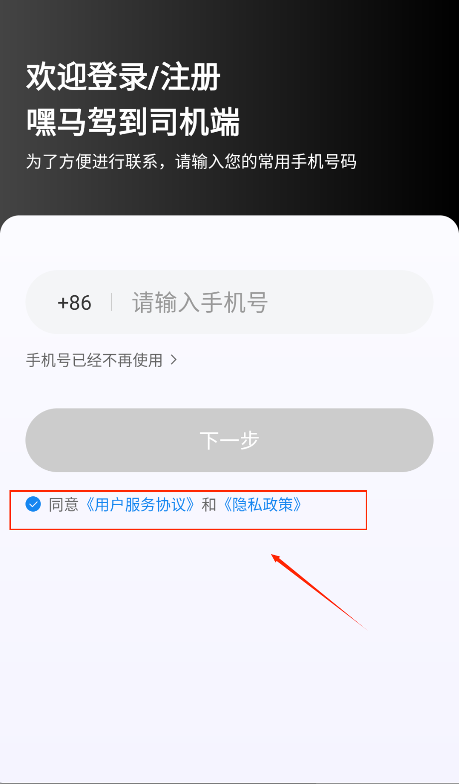 2、读完协议后在完全理解的基础上点击同意按钮,要是不能接受条款内容就先不要使用啦,点击同意后就代表你正式成为平台认证司机了呢。